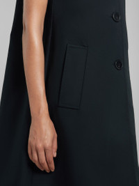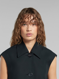 Midi dress crafted from bonded cotton. Sleeveless cocoon silhouette with front maxi buttons. Elevated with a collar and welt pockets. Made in Italy. DETAILS FIT The model is 5' 11''. The model is wearing size 40 IT. COMPOSITION Primary Fabric: 100% Cotton Woven - Coating: 100% Polyurethane - Application: 100% Calf Leather