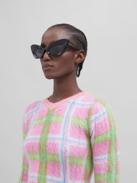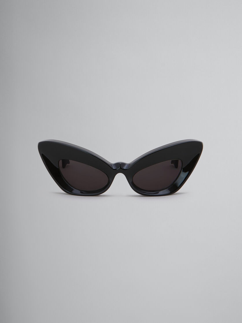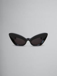 Caelicola sunglasses made from chunky acetate. Playful exaggerated take on a classic cateye silhouette, drawing inspiration from theatrical masks. Statement chiselled rims, engulfing deep-set lenses. Thick temples with distinctive forked tips, embellished with individually hand-applied enamelled Marni letters. Made in Italy MODEL EWME0061A0H380001P1J COMPOSITION T1 100% AC