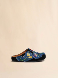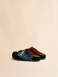 Limited Edition Fussbett sabot. Crafted from cotton corduroy, featuring denim patches with hand-embroidered flowers. Fussbett leather insole. Ribbed rubber outsole. Part of the Artists’ Capsule Collection: an exclusive collab between Creative Director Francesco Risso and artists Soldier Boyfriend and Olaolu Slawn. Made in Italy MODEL SBMS004601P7409ZO947