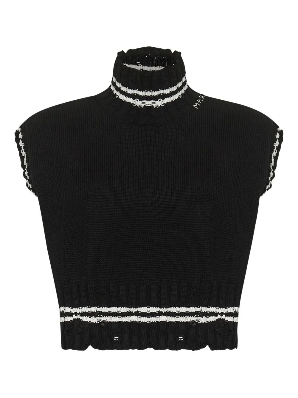 high-neck sleeveless T-shirt Highlights - Black - High neck - Striped pattern - Ribbed armholes - Contrast edges Made in Italy Composition Cotton 100% Washing instructions Read Manufacturer Guidelines