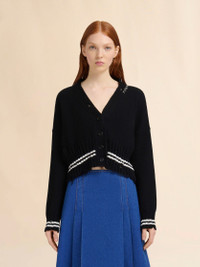 Cropped cardigan knitted from cotton with dishevelled edges. Wide chunky-rib hem and cuffs with contrast stripes. Hand-embroidered Marni Mending logo on the shoulder. Made in Italy MODEL CDMD0223Q0UFC652V2N99 COMPOSITION Primary Fabric: 100% Cotton Knit - Secondary Fabric: 100% Cotton Knit