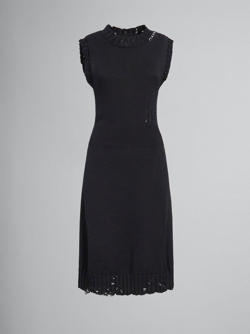 BLACK DISHEVELLED COTTON KNITTED DRESS