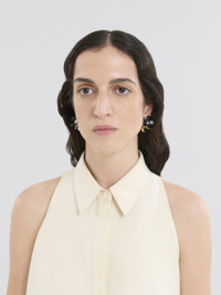Flower-shaped stud earrings in enameled metal, with a rhinestone set in the center. Double flower in gold-tone metal on the back. Post closure. Made in Italy MODEL ORMV0360A0M200000N99 COMPOSITION Body: 98% Brass 2% Glass