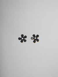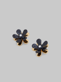 BLACK ENAMELED METAL FLOWER POP EARRINGS