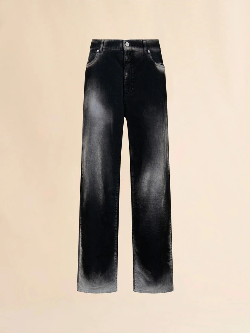 Five-pocket jeans made from flocked denim, garment-dyed and bleached to create a degrade effect. Cut with a low rise and narrow leg. Leather Marni patch on the back waist. Part of the Artists' Wardrobe: a selection spanning statement pieces and everyday essentials, drawing inspiration from the works of artists Slawn and Soldier. Made in Italy MODEL PAJD0563A0USCY2400N99