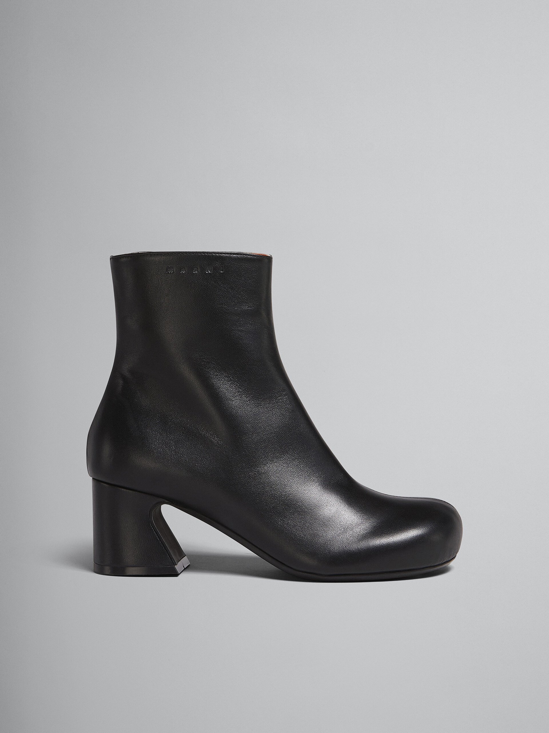 Ankle boots in soft nappa lambskin with zip. Covered 6 cm heel matching the upper. Embossed Marni signature. Leather lining. Ribbed rubber outsole. Made in Italy. DETAILS COMPOSITION Upper: 100% Ovine Leather - Lining: 100% Goat Leather - Inside: 100% Goat Leather - Sole: 100% Rubber - Application: 100% Ovine Leather