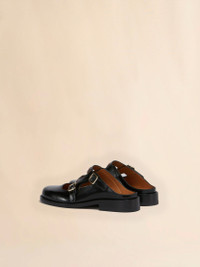 Bambi 3.0 mule loafer made of brushed calf leather. Strap with double metal side buckle and hand-embroidered Marni Symbol in contrasting colour. Leather lining and leather sole. Made in Italy MODEL SBMS010202PS67900N99 COMPOSITION Upper: 100% Calf Leather - Lining: 100% Calf Leather - Inside: 100% Calf Leather - Sole: 100% Calf Leather