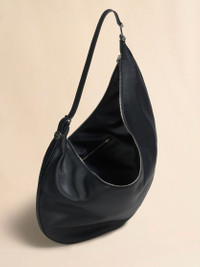 Dot hobo crossbody bag made from calfskin leather with a sumptuous, semi-gloss finish that brings out its natural grain. Medium size. Slouchy asymmetric silhouette with adjustable buckle strap, embellished with a logo-engraved disc and attached via a metal detail for a floating effect. Zip closure and inside zip pocket. Made in Italy MODEL SBMP0250U0P822200N99 COMPOSITION Body: 100% Calf Leather - Lining: 100% Cotton - Lining: 100% Polyurethane - Metallic Parts: 100% Brass - Metallic Parts: 100% Zama
