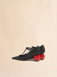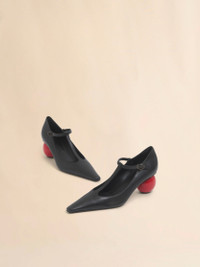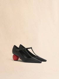 Heeled Mary Jane pump made from supple nappa leather. Pointed toe and buckle fastening. Set on a 6 cm spherical jewel heel with a lacquered red finish. Leather sole. Made in Italy MODEL PUMS013507P712200N99