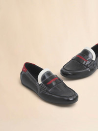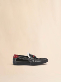 BLACK LEATHER MOCCASIN WITH LOGO TAB