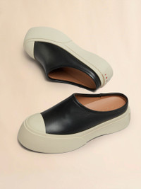 Pablo sabot crafted from sleek nappa leather. Leather lining. Soft leather insole. Chunky rubber platform sole with Marni logo on the back. Made in Italy MODEL SNZW018502P272200N99 COMPOSITION T1 100% PBV - T2 100% PBV - T3 100% PBV - T4 100% EL