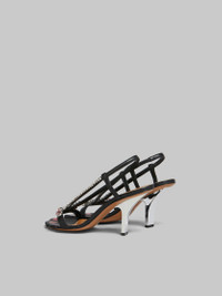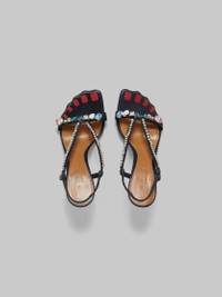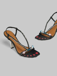 Strappy leather sandals. Slingback style, embellished with delicate rhinestones and coloured gemstones. Wavy open toe with contrast toe marks. Finished with a mirrored squared off kitten heel. Leather sole and insole. DETAILS COMPOSITION Upper: 100% Ovine Leather - Lining: 100% Goat Leather - Inside: 100% Goat Leather - Sole: 100% Calf Leather