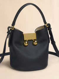 Trunkaroo bucket bag made from soft grained leather. Fastens with a visible Trunkaroo clasp. Top handle. Detachable and adjustable shoulder strap. Ecru split leather lining with Inside pocket. Made in Italy MODEL SCMP0081U0P818500N99