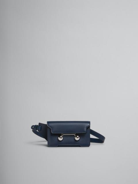 Trunkaroo crossbody bag crafted from calfskin leather. Front flap with magnetic closure, featuring engraved Marni lettering and oversized stud details. Contoured base on the front and back. One compartment with inside pocket. Lined in nappa leather. Detachable and adjustable strap: can also be worn as a clutch. Made in Italy DETAILS COMPOSITION Body: 100% Calf Leather - Lining: 100% Ovine Leather - Metallic Parts: 100% Brass - Metallic Parts: 100% Steel