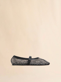 BLACK MESH MARY JANE BALLET FLAT WITH CRYSTALS