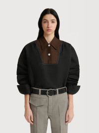 BLACK POPLIN SHIRT WITH CONTRAST BIB INSERT