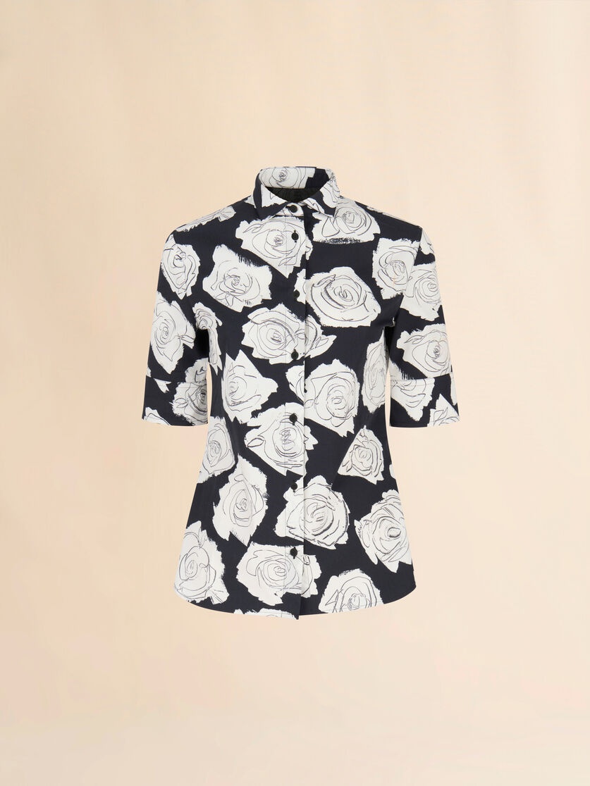 Shirt made from cotton poplin with a compact, weighty feel. Printed with this season's Luna black and white rose pattern, created using a special scraping technique on wet paint. Short sleeves with wide buttoned cuffs. Slim fit. Covered buttons. Made in Italy MODEL CAMA0626A0UTC521LUN99 COMPOSITION Primary Fabric: 100% Cotton Woven