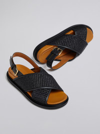 Iconic raffia and leather criss-cross fussbett sandal. Leather back strap. Gold metal buckle. Contrast-coloured anatomical insole. Micro rubber midsole. Rubber and jute outsole. Made in Italy. DETAILS FIT Fits true to size. COMPOSITION Upper: 52% Cotton 48% Polyamide-Nylon - Contrast: 100% Calf Leather - Lining: 100% Calf Leather - Inside: 100% Ovine Leather - Sole: 100% Rubber