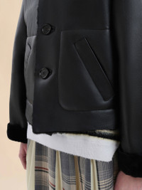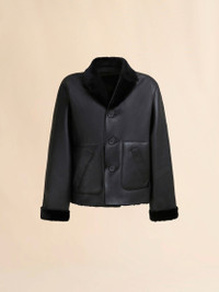 Short reversible shearling and nappa jacket. Collar can be worn standing or turned down. Front button fastening. Welt pockets on one side, patch pockets on the other. Made in Italy MODEL GIMX0187B0ULM094RON99 FIT The model is 5' 10''. The model is wearing size 40 IT. COMPOSITION 100%Lambskin Leather, Application 100%Cowhide Leather