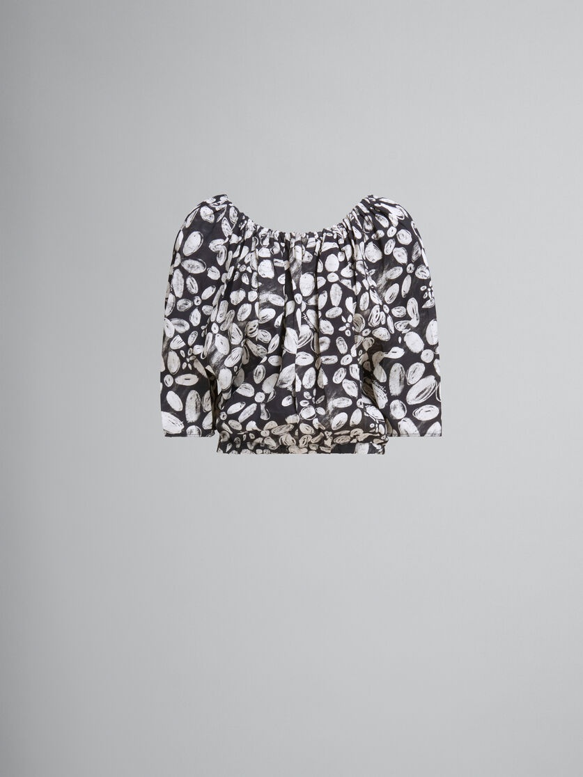 BLACK SATIN-BACK CRÊPE TOP WITH BLOOMING PRINT