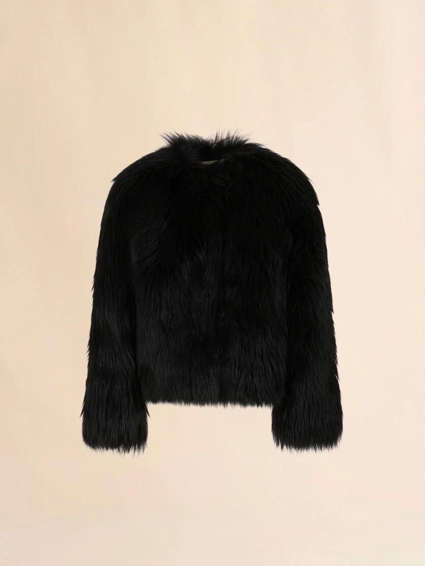 Short single-breasted coat made from fluffy shearling fabric. Boxy silhouette. Hidden front fastening. Made in Italy MODEL GIMX0321A0ULM127RON99