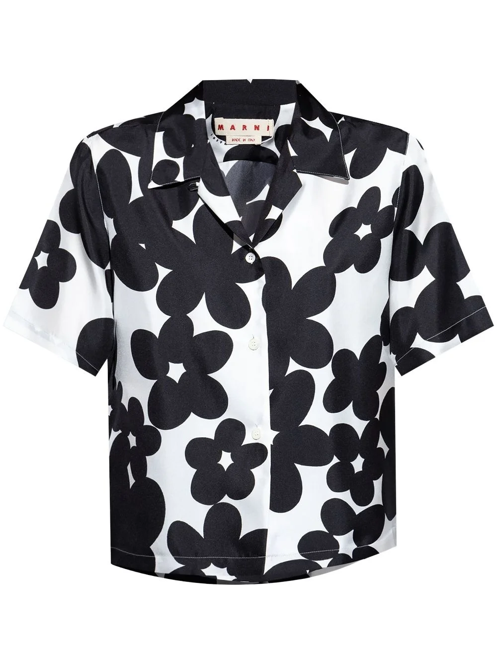 floral-print shirt Highlights - Black - Front button fastening - Shoulder pads - Camp collar - Short sleeves Made in Italy Composition Silk 100%