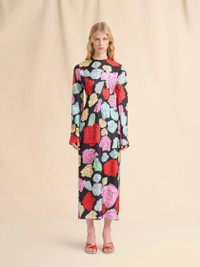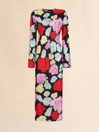 Midi dress made from silk twill. Round-neck silhouette, cinched in at the waist with darts. Long sleeves, lightly flared at the cuff. Printed with this season's Orion multicoloured rose pattern, created using a special scraping technique on wet paint. Back zip closure. Made in Italy MODEL ABMA1444A0UTSG30ORN99 COMPOSITION Primary Fabric: 100% Silk Woven - Lining: 65% Polyamide-Nylon 35% Rubber