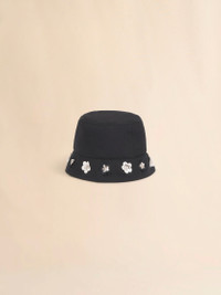 BLACK TAFFETA BUCKET HAT WITH DAISY APPLIQUÉS