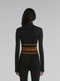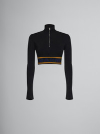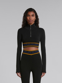 Long-sleeved turtleneck made from a stretch viscose blend. Cropped hem with jacquard stripes and maxi logo. Slim-fit style with a half zip closure. DETAILS FIT The model is 5'9.5''. The model is wearing size 40 IT. COMPOSITION Primary Fabric: 94% Viscose-Rayon Knit 6% Polyester Knit