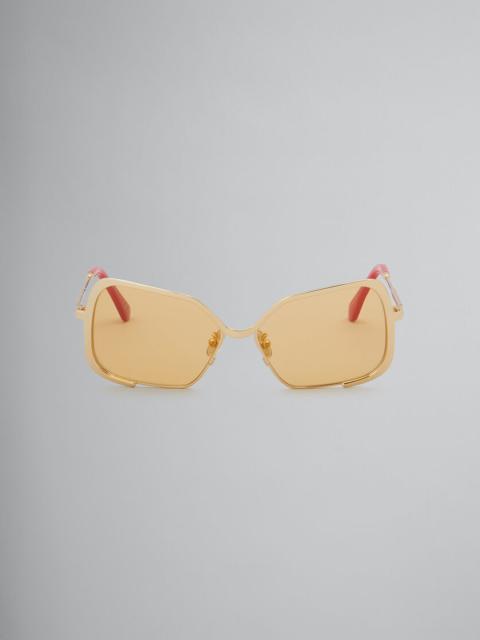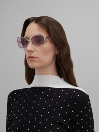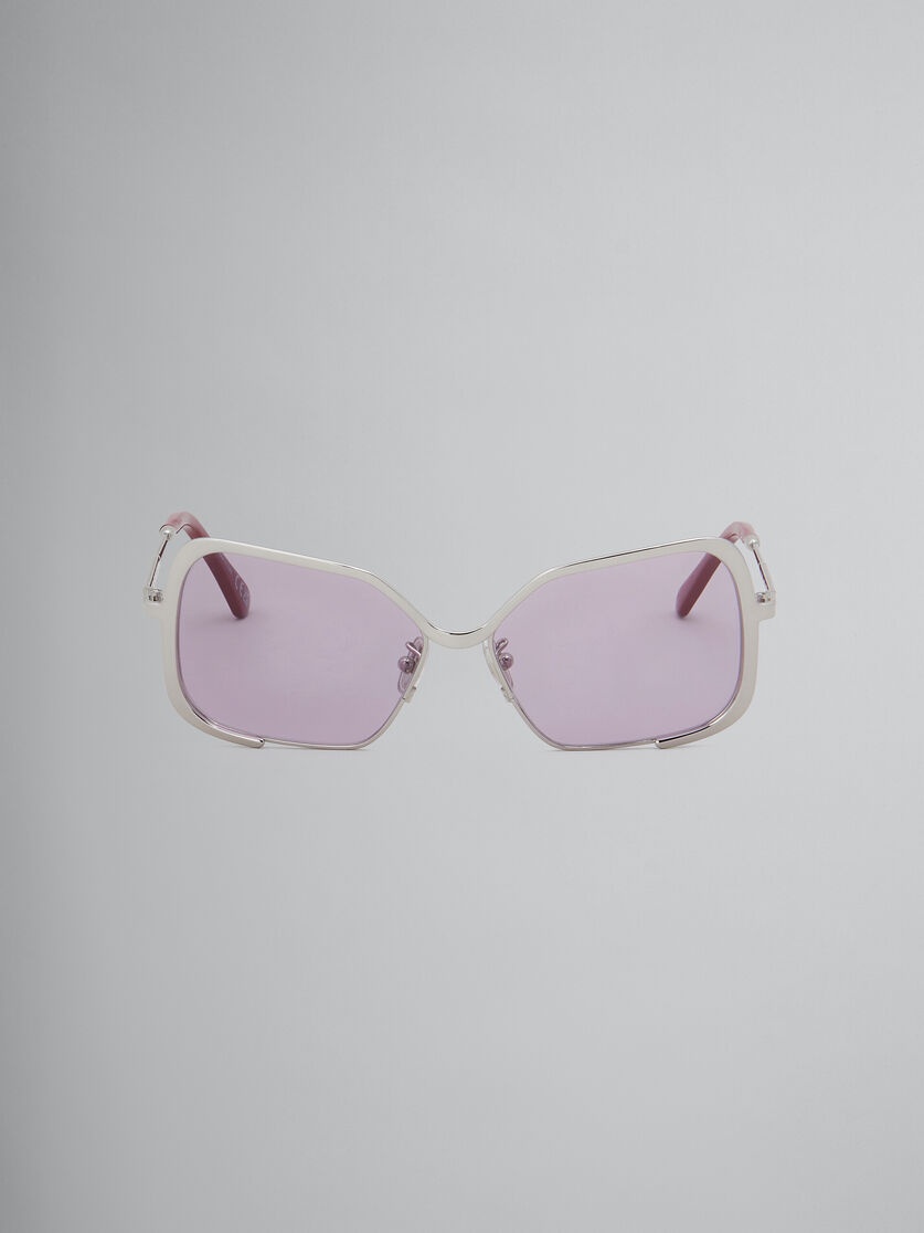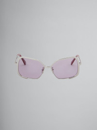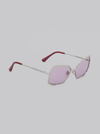Unila sunglasses crafted from sleek metal. Constructed from a single rod forming a soft U-shaped nose bridge. Oversized geometric lenses. Flexible metal temples with coloured acetate tips. Made in Italy MODEL EWME0058A0H370002OEN COMPOSITION Primary Fabric: 10% Acetate 20% Nylon 70% Metal