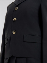 Tropical wool single breasted jacket with three buttons, open lapels and flap pockets. The lined model has a slit at the back, and a hand embroidered Marni Symbol on the left shoulder. Made in Italy MODEL GIMA0202S1UTP77100N99 FIT The model is 5' 9''. The model is wearing size 40 IT. COMPOSITION Primary Fabric: 53% Polyester Woven 43% Virgin Wool Woven 4% Elastan Woven - Lining: 100% Viscose-Rayon - Sleeve Lining: 100% Cupro Woven