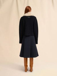 BLACK WOOL CARDIGAN WITH SHEARLING PATCHES
