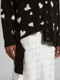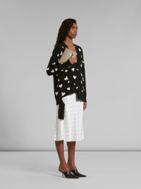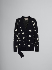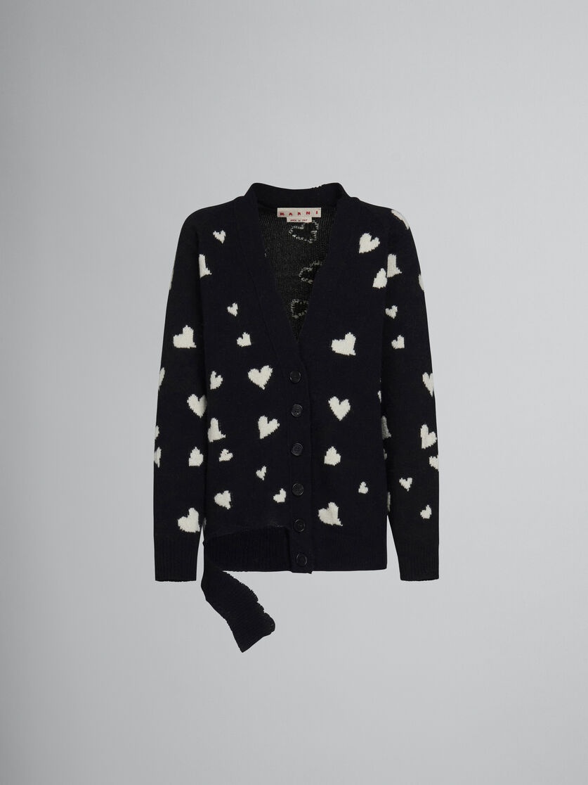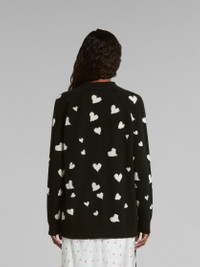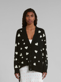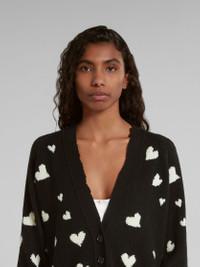 BLACK WOOL LONG CARDIGAN WITH BUNCH OF HEARTS MOTIF