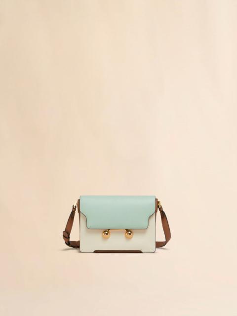 Trunkaroo medium rectangular shoulder bag crafted from calfskin leather. Colour block design. Front flap with magnetic closure, featuring engraved Marni lettering and oversized stud details. Contoured base on the front and back. One compartment with inside pocket. Lined in nappa leather. Detachable and adjustable buckled shoulder strap: can also be worn as a clutch. This product is made using leather from a Leather Working Group medalled tannery. LWG supports more responsible leather manufacturing across the globe. Made in Italy MODEL SBMP0195U1P6948ZO877 COMPOSITION Body: 100% Calf Leather - Lining: 100% Ovine Leather - Metallic Parts: 100% Brass - Metallic Parts: 100% Steel