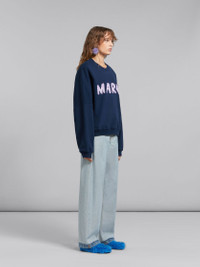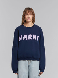 BLUE BIO COTTON SWEATSHIRT WITH MARNI PRINT