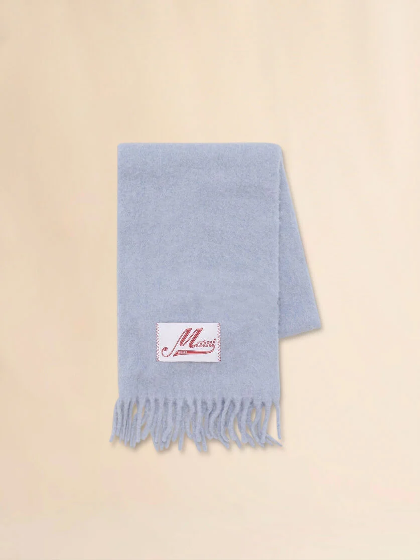 Brushed alpaca scarf with fringe trims. Marni logo label. 35 cm x 220 cm. Made in Italy MODEL SCMC0059Y0UTW91800B50 COMPOSITION Primary Fabric: 80% Alpaca Woven 20% Polyamide Woven CARE INSTRUCTION Do not wash. Do not bleach. Low iron. Dry clean (delicates). Do not tumble dry. Do not professionally wet clean.