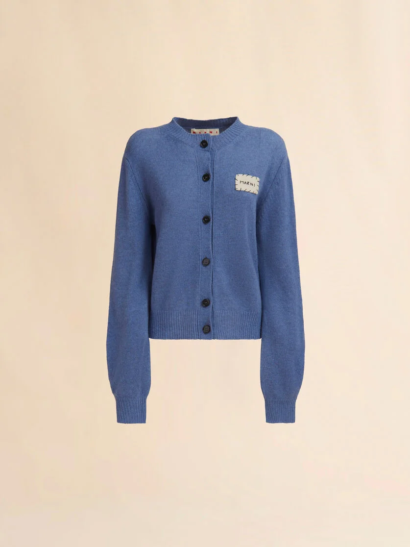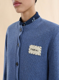 BLUE CASHMERE CARDIGAN WITH MARNI PATCH