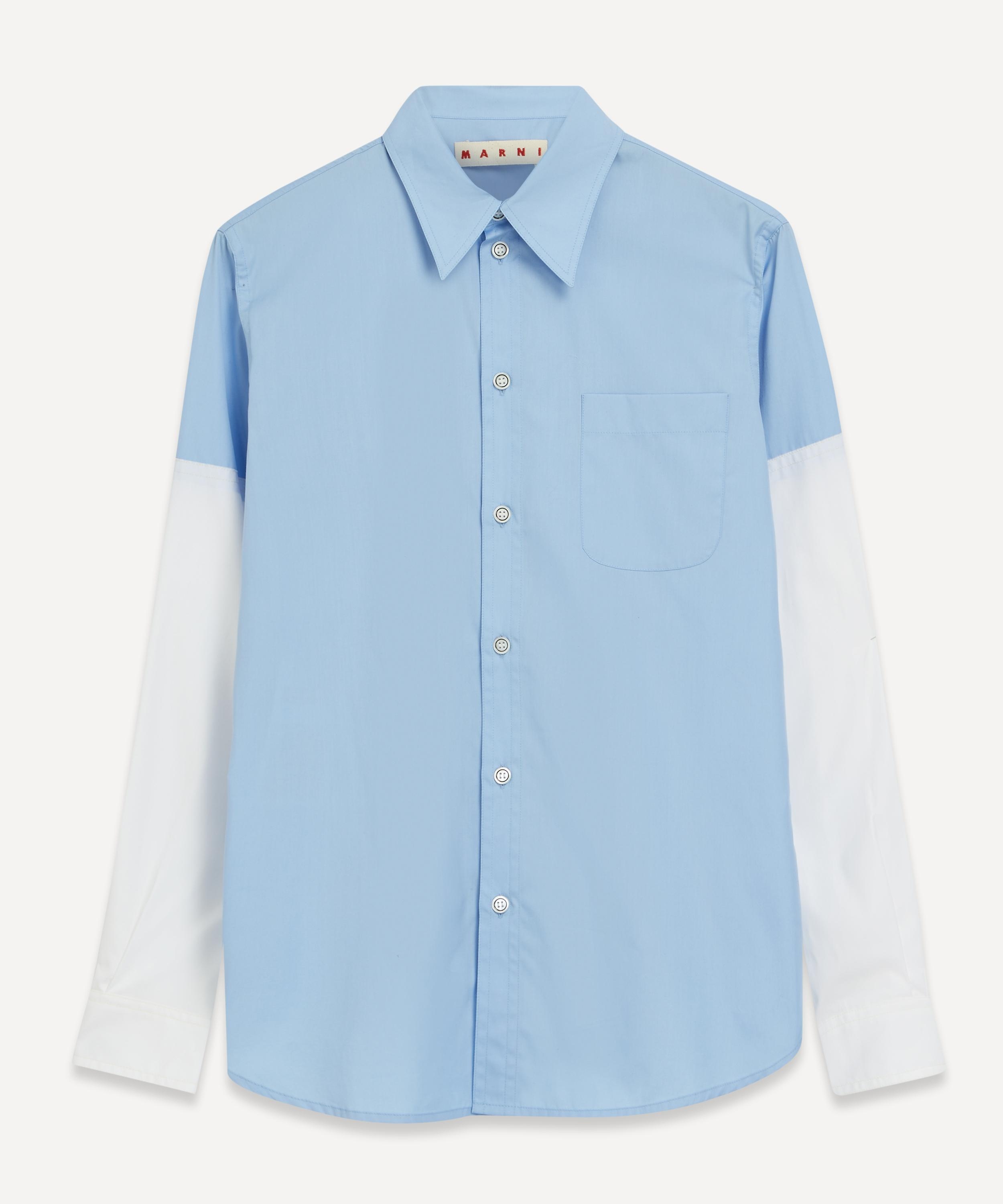 DETAILS Cotton shirt Relaxed fit Dropped shoulders Long white sleeves Point collar Buttoned closure and cuffs Singles chest patch pocket Embroidered Marni logo on back SIZE & FIT Model is 180cm/5ft 11"; Chest: 79cm; Waist: 62cm; Hip: 89cm and wears a size 8 COMPOSITION & CARE 100% Cotton Dry clean