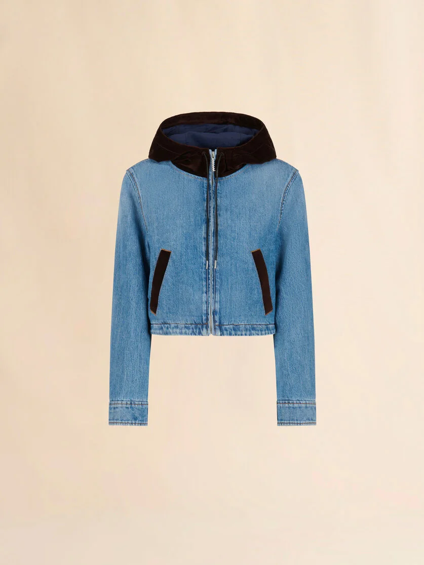 BLUE DENIM JACKET WITH VELVET HOOD