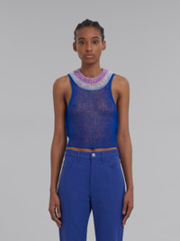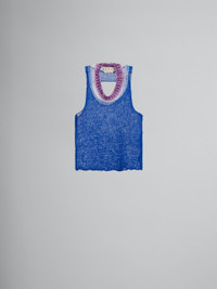 BLUE MESH WOOL AND CASHMERE TANK TOP WITH CUTOUT
