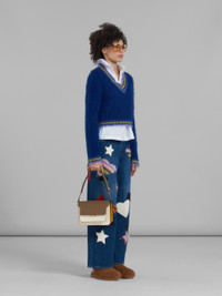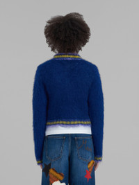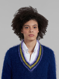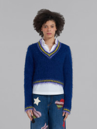 BLUE MOHAIR JUMPER WITH STRIPED TRIMS
