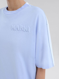 Organic cotton jersey T-shirt with contrast back. Boxy fit with crew neck. Embellished with a tonal padded maxi Marni logo on the chest. Made in Italy MODEL THJET49QXUTC01700B20 FIT The model is 5' 11''. The model is wearing size 40 IT. COMPOSITION Primary Fabric: 100% Cotton Knit - Secondary Fabric: 100% Cotton Knit