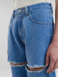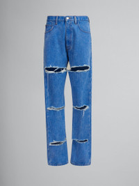 BLUE ORGANIC DENIM SLASHED BOYFRIEND JEANS