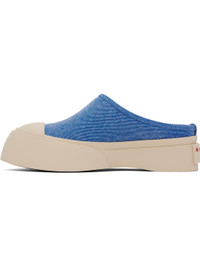 Denim slip-on loafers in blue. · Rubber cap toe · Logo embossed at padded calfskin footbed · Buffed calfskin lining · Rubberized logo patch at heel · Treaded rubber platform sole · Platform: H2" Supplier color: Light blue Upper: textile. Sole: rubber. Made in Italy 251379F121000