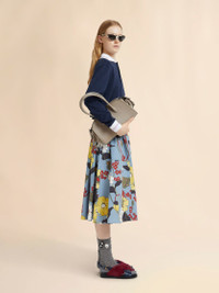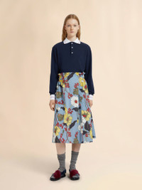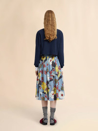BLUE POPLIN ELASTICATED MIDI SKIRT WITH MELODIA PRINT