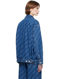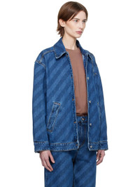 Non-stretch denim jacket. Stripes throughout. · Spread collar · Button closure · Welt pockets · Logo applique at shoulder · Single-button cuffs · Adjustable button tabs at back hem · Logo-engraved silver-tone hardware · Contrast stitching in tan Supplier color: Blue kyanite 100% cotton. Made in Italy 251379F060000