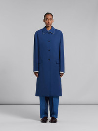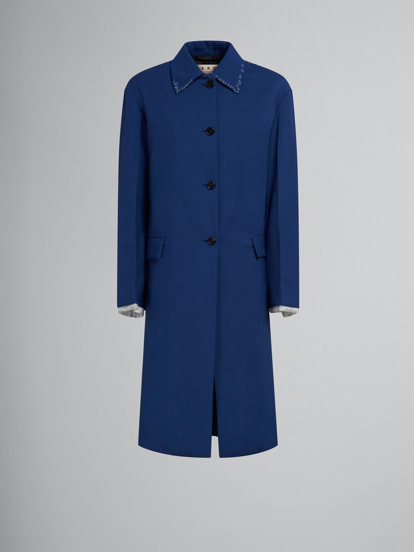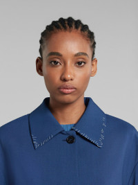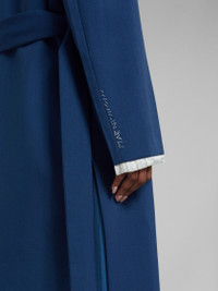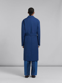 Tropical wool trench coat with waist tie and button closure. Pressed sleeves with contrast striped lining poking out. Styled with flap pockets and side slits. Hand-embellished with Marni mending stitches on the collar. Lined. Made in Italy DETAILS COMPOSITION Primary Fabric: 100% Virgin Wool Woven - Lining: 100% Cupro Woven - Sleeve Lining: 100% Cupro Woven