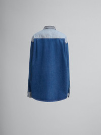 BLUE TWO-TONE DENIM SHIRT WITH RAW-CUT EDGES