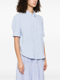 check-pattern shirt Highlights - Cerulean blue - Front button fastening - Buttoned-cuff sleeves - Chest patch pocket - Box-pleat detail Imported Composition Polyamide 51%, Cotton 49% SIZE & FIT Model measurements Height 5 ft 10 in(1.79 m) Bust/Chest 31.88 in(81 cm) Hips 35.43 in(90 cm) Waist 23.62 in(60 cm) FittingInformation Designed for a relaxed fit, this piece allows for comfort and movement when worn Made from a midweight non-stretch fabric
