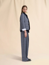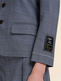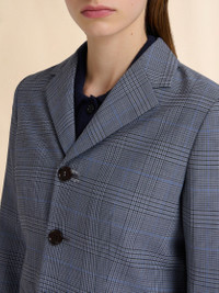 BLUE WOOL CROPPED JACKET WITH PRINCE OF WALES CHECK